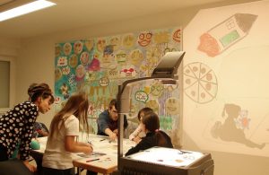 Unter meiner Anleitung und mit einfachen Mitteln wie Schere, Papier, Folien und OverheadProjektor haben sie die Flucht des Mädchen von ihrem Planeten bebildert – woraus dann die Videoprojektion für die Oper entstand.